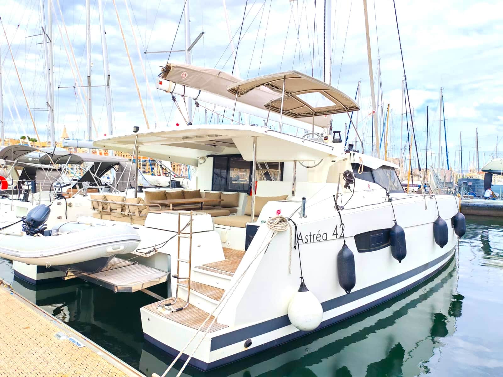 L’Astrea 42 est un catamaran moderne qui se distingue par sa maniabilité et ses performances en mer, offrant une navigation fluide et stable.