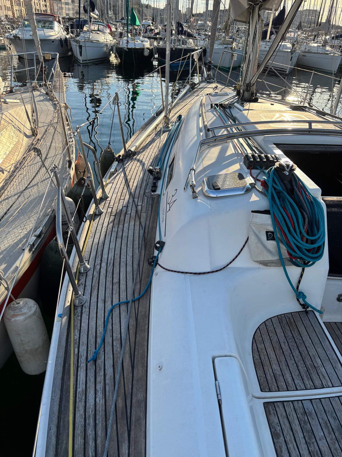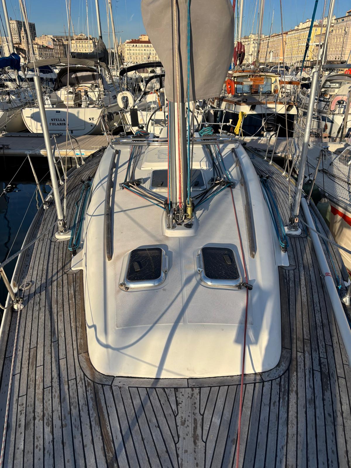 Côté navigation, ce modèle est reconnu pour son comportement sain et équilibré en mer, même dans des conditions soutenues. Il offre une barre précise et réactive, procurant de bonnes sensations au skipper tout en restant accessible à un équipage amateur. Cette polyvalence est l’un de ses principaux atouts : il peut aussi bien participer à des régates que servir de bateau familial pour des sorties en mer